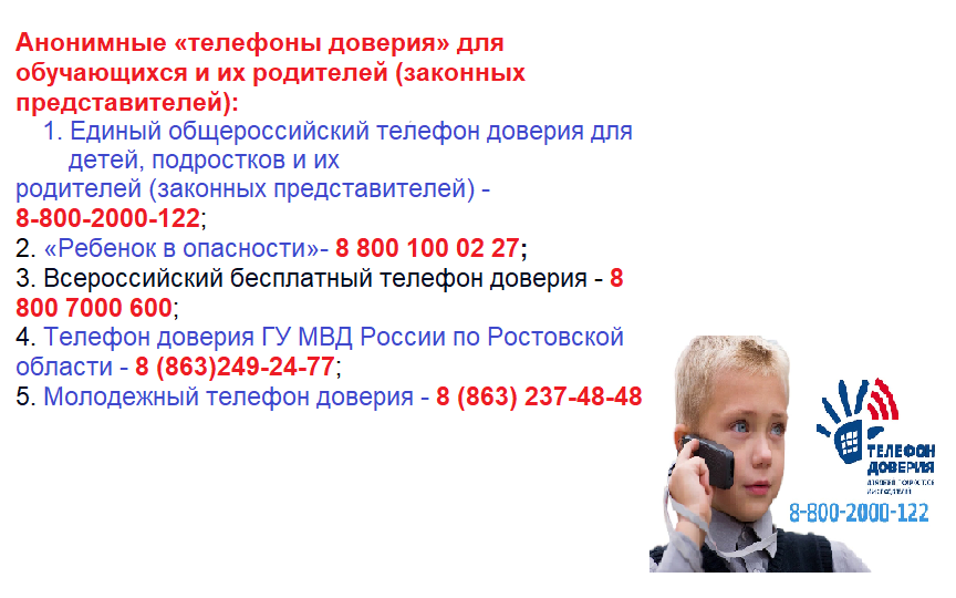 Информация о действующих службах «телефон доверия»